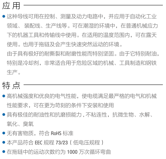 【 耐油非屏蔽超高柔性拖链电缆 】